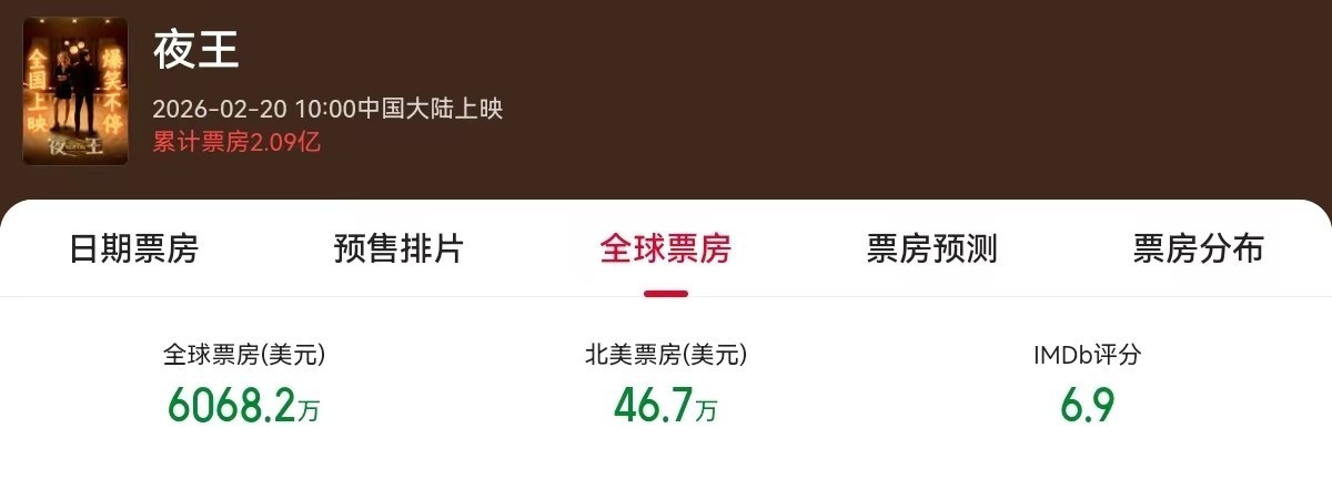 春节档电影《夜王》的起跑时期,天然比其他影片慢一些,但票房少量没少赚。