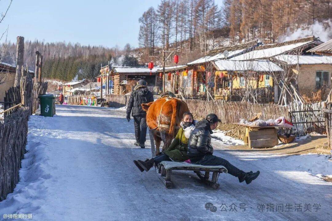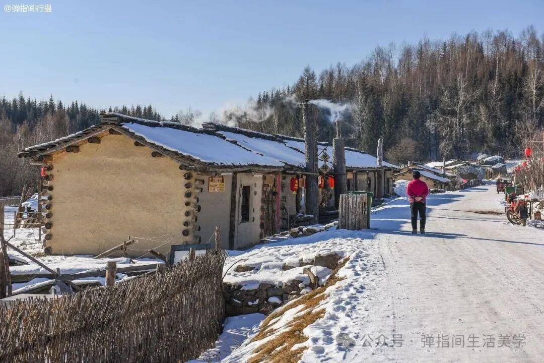踏入村口,手艺仿佛陡然放缓。数十栋原木垒砌的“木榼楞房”披着厚厚白雪,在冬日阳光下泛着温润的后光。屋檐下一串串大红灯笼在冰天雪地中晕开团团暖红,与板屋的褐、雪地的白,组成一幅对比狠恶却又无比和洽的静谧油画。这里莫得喧嚣的生意街,唯有积雪被踩踏的“咯吱”声和偶尔的犬吠,眨眼间将东谈主拉回阿谁远处、真挚的年代。