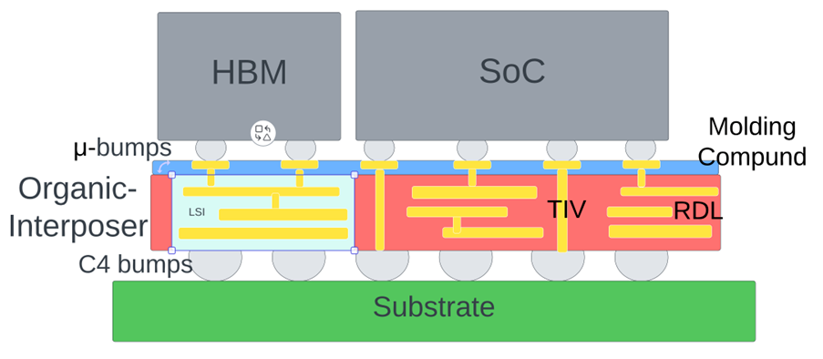 CoWoS_L通过插入器与LSI芯片竣事芯片间的互连,并运用RDL层进行电力与信号的传输。