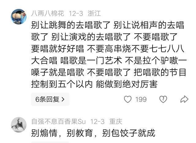 然后评述区就炸锅了,行家纷繁说出我方的思法和见地,看来,春晚的争议一直没停过。 有东说念主说,春晚舞台越来越好意思,台上越来越吵杂,却离匹夫越来越远。 当年,一个春晚会出几首流行经典歌曲,当今一年也很少有一首流行金曲。 当年一个春晚,会出几个令东说念主爆笑的相声小品,出几句一年不忘的梗,当今一年也见不到一个好相声好小品了。
