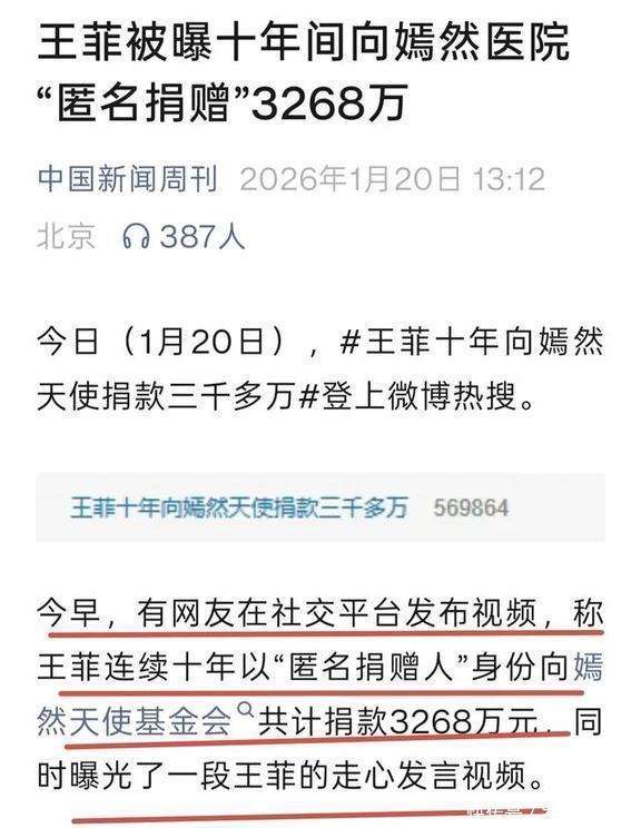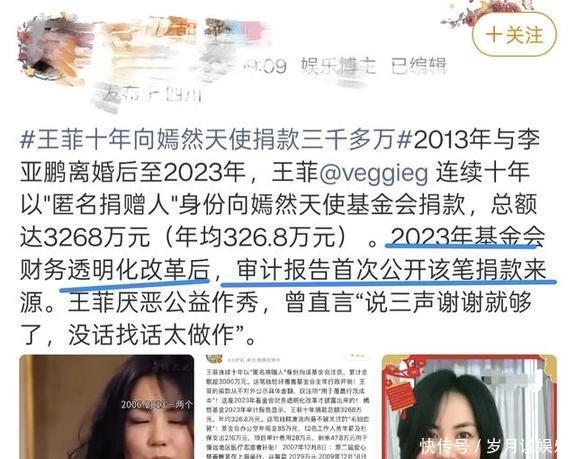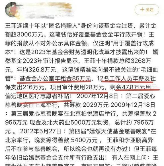 在网友们转发的信息里,齐是说“嫣然基金2023年的审计讲述泄露,王菲十年捐了3268万块,平均每年326.8万。”